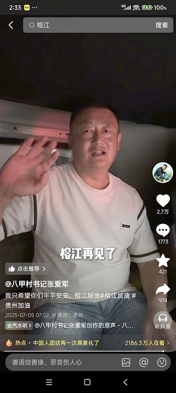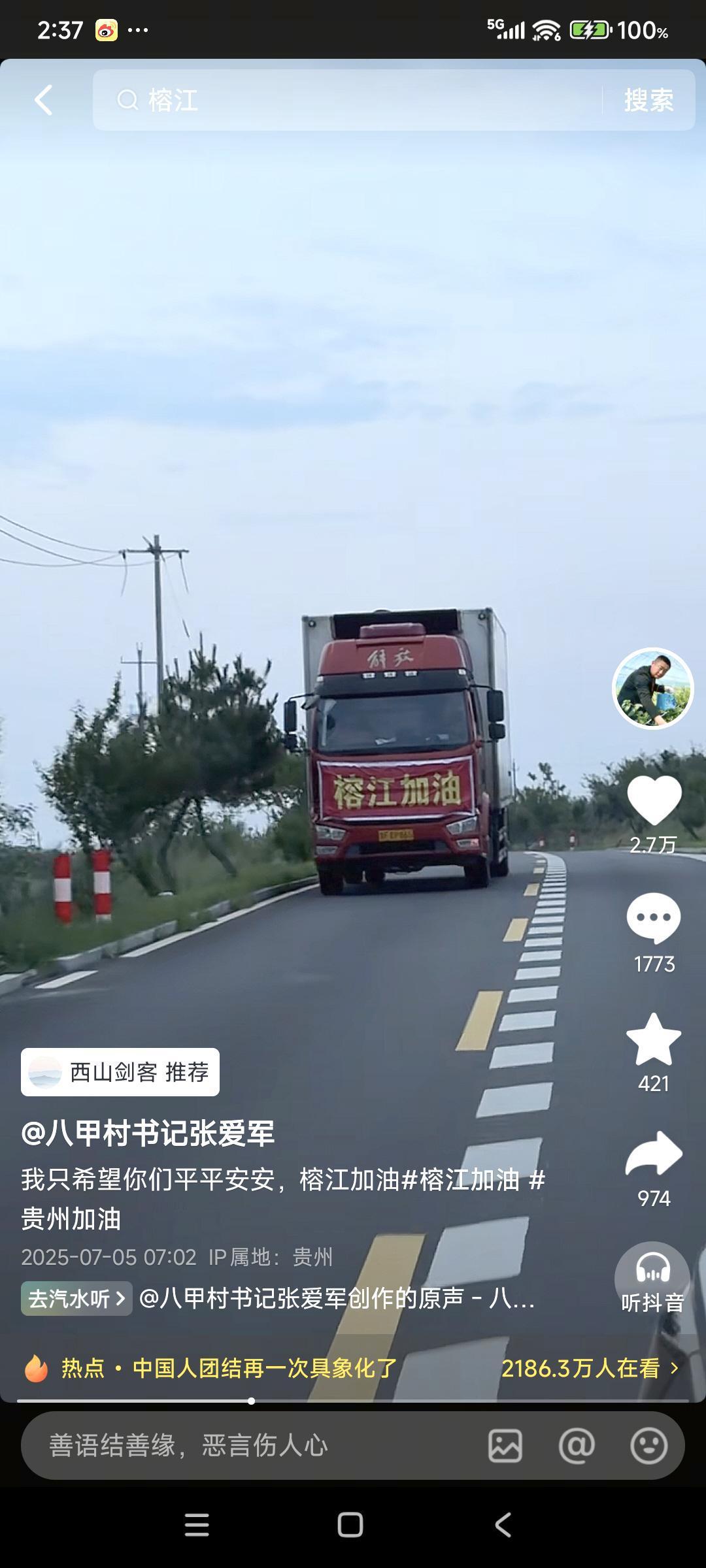 张爱军随冷链物流大货车一道前往榕江。“我也会开大货车,这样在路上能保证人休息车不休息”,经过两天两夜长途跋涉,爱心物资终于抵达贵州榕江县城。