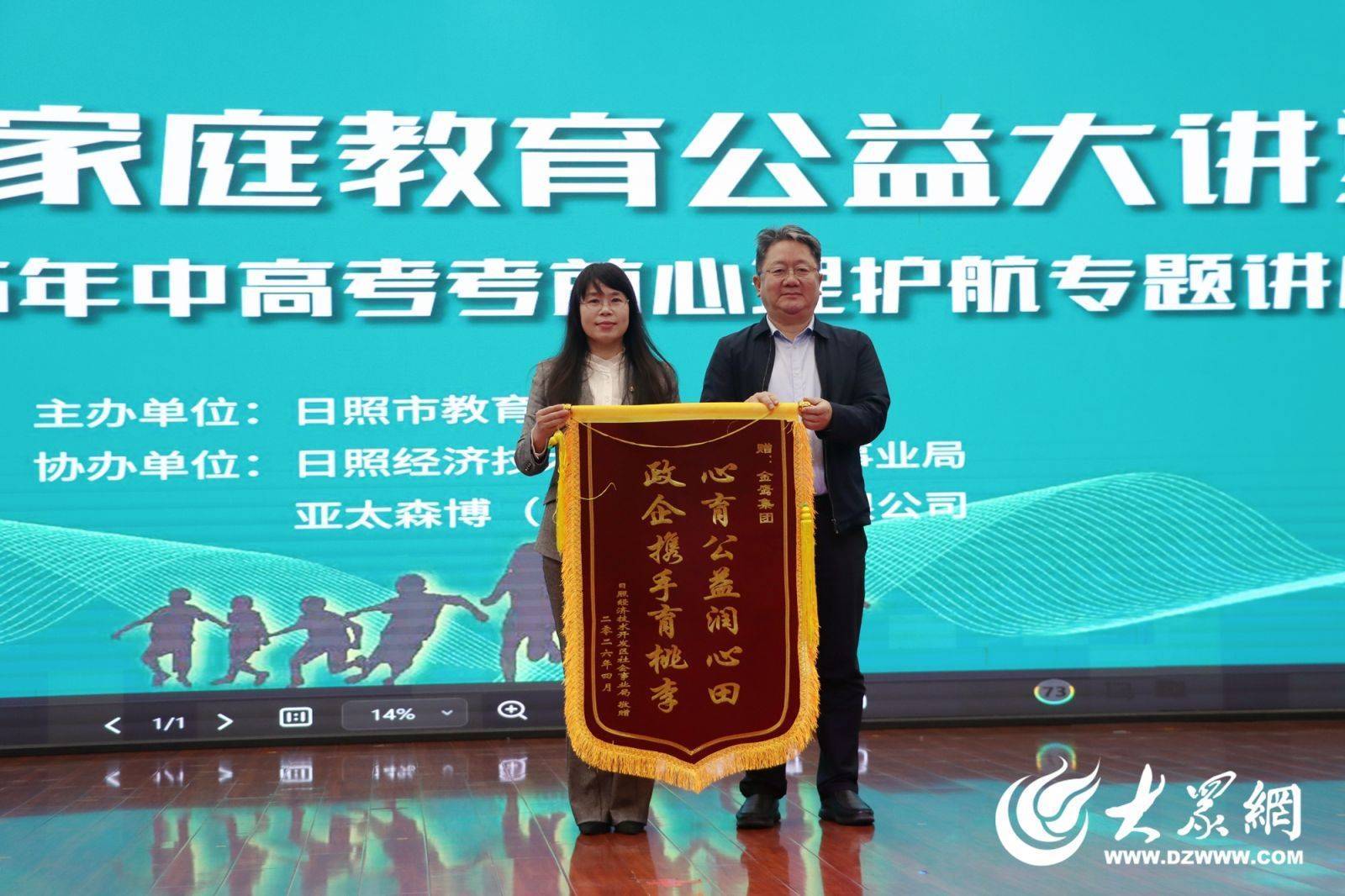中高考临近,学子备考压力备受关注,家长的陪伴方式也成为影响考生备考状态的关键因素。4月22日上午,由亚太森博(山东)浆纸有限公司联合日照市教育局、日照经开区社会事业局共同举办的“日照市家庭教育公益大讲堂——2026年中高考考前心理护航专题讲座”正式开讲,通过线上线下相结合的方式,为广大考生家长送上专业的心理护航指导,助力家长科学高效陪伴孩子备战中高考。